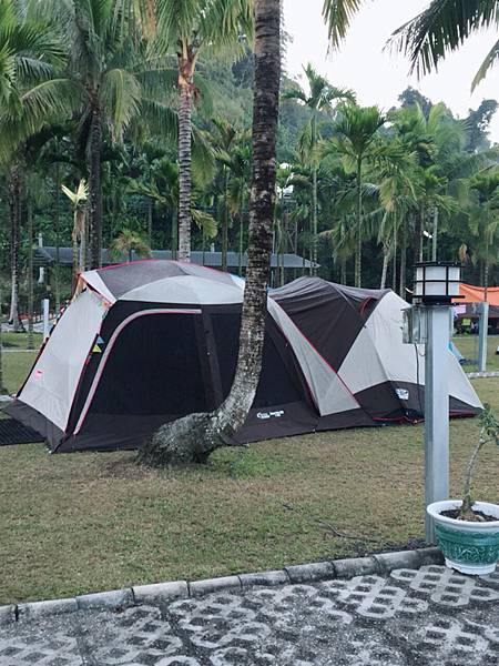 眼前廣闊的椰林草地,馬上讓你寒氣全消啊,這次我們是在A8的營位、營地主人說是5*8大小、但是現場目視應該超過,有可能我們位置剛好有ㄧ顆椰子樹、所以營主把這個位置又加大了。